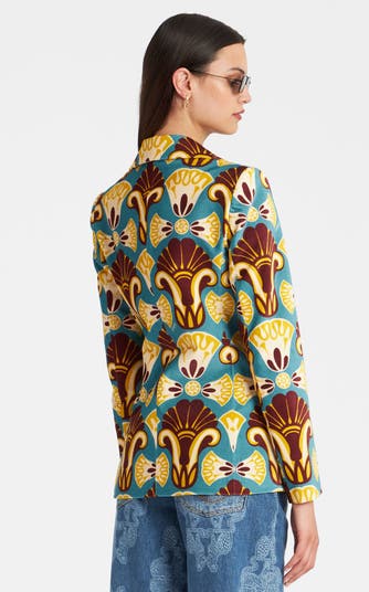 If the next Bond is a woman, she’s wearing this blazer. An updated take on a seventies silhouette, the 24/7 Jacket has a structured shoulder and slightly tapered waist for a fiercely flattering fit. Cut in sumptuous Italian velvet cotton in our triumphant Dendera print, wear this beauty over a black top and trousers to bring a pop of color to your minimalist office ensemble or clash with our printed 24/7 Pants for a badass maximalist moment.