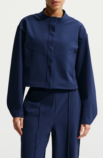 An airy pleated back panel furthers the relaxed fit of this PerfectStretch cropped jacket, made for your all-day activity thanks to its lightweight four-way-stretch fabric and sweat-wicking tech.