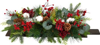 24-in Holiday Berries, Pinecones and Eucalyptus Christmas Artificial Arrangement Cutting Board Wall Décor or Table Arrangement