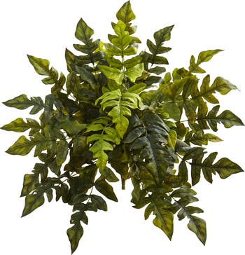 One word can be used to describe the artificial holly fern plant: dramatic. The dark, lobbed shape foliage is expertly arranged in a full circle with several leaves sticking out from the center. If its dramatic, then it'll always make a gorgeous centerpiece for a dining room table. It comes in a set of two, so add both pieces into the same planter for a fuller presentation.