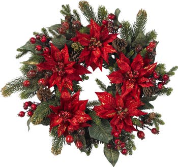 24-in Poinsettia & Berry Wreath