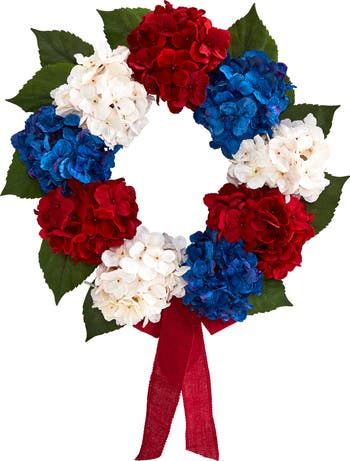 24-in Red, White and Blue Americana Hydrangea Artificial Wreath