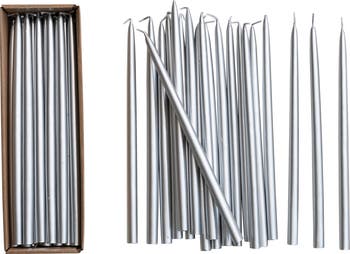 24-Piece Unscented Thin Taper Candles in Box, Silver