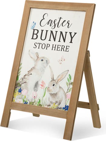 Start a journey through Easter with a creative spirit this season! "Easter BUNNY STOP HERE" is written down the white panel front that is accented with two lovely bunnies, flowers and butterflies. Perfect for a master bedroom, living room, bathroom, feature wall, or just about anywhere in your home.