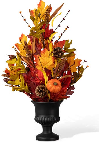 Spruce up your home with this lovely, charming maple leaves urn table tree. Decorated with pumpkin, berries, maple leaves and other plants, this urn table tree is a wonderful way to bring some quaint fall flair to your house.