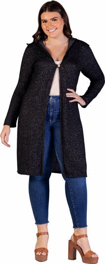 24seven Comfort Apparel Knee Length Long Sleeve Hooded Cardigan Shrug, Main, color, Black