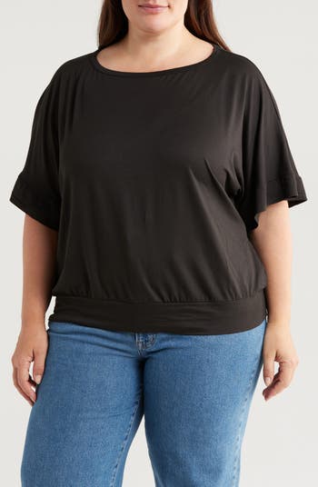 Wide sleeves and a banded hem add to the easy relaxed fit of this T-shirt cut from a fine drapey knit that gives your casual look a bit of pulled-together polish.