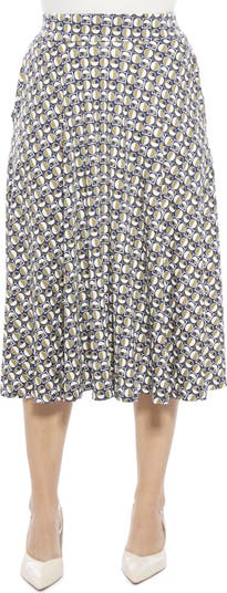 Womens Geometric Elastic Waist Pocket A-Line Midi Skirt