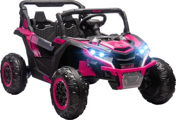- Dual Motor Power: This 2-seater ride-on car for kids features two 24-V motors to give little drivers the power to traverse across various terrains.