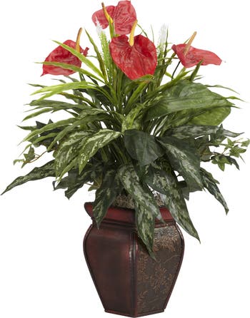 26-in Mixed Greens & Anthurium w/Decorative Vase Artificial Plant