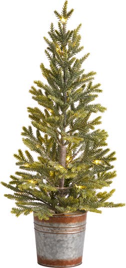 26-in Pine Natural Look Artificial Christmas Tree with 35 Warm White Lights in Rustic Metal Planter