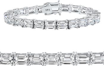 26Ct Emerald Cut Diamond East West Tennis Bracelet 14k Gold Lab Grown 7"