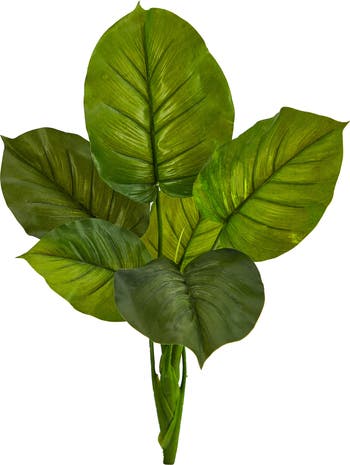 Create an evergreen environment throughout everyday interiors with the help of these artificial bushes; flaunting a dense collection of large, oversized philodendron leaves boasting naturally occurring details in a palette of bright, earthy hues, they inject a sense of natural freshness wherever displayed. Arrives in a loose set of four and each stem reaching 27” long, they can easily be displayed as a collection or individually throughout any space.