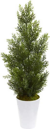 Standing gracefully in an included decorative planter, this artificial 27” mini cedar pine tree, with an abundant amount of green pine needles, will brighten any dull corners or wasted spaces in your home. Flaunting its realistic appearance, this ornament will bring the warmth of the sun and the feel of the forest indoors. Place it near a woven-wicker chair or basket for a touch of coastal appeal.