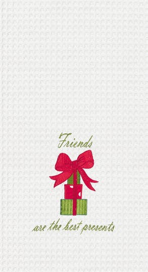 27" x 18" Christmas Presents w/ Red Bow "Friends Are The Best Presents" Red Bow Embroidered Cotton Waffle Weave Kitchen Dishtowel