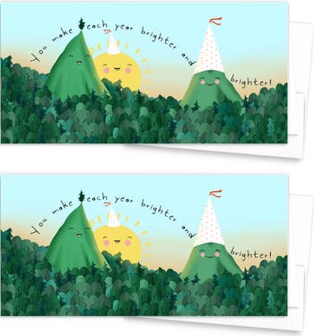 - 2-count of "you make each year brighter and brighter" birthday mountains greeting cards