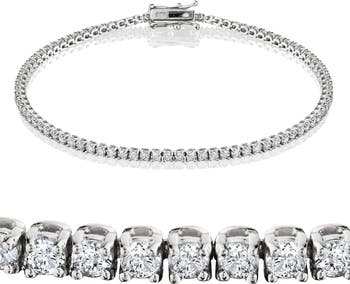 This classic style tennis bracelet features round brilliant cut diamonds. All diamonds are prong set in 14k white gold. The bracelet is secured by a double locking clasp. 2.00ct total diamond weight. Measure a standard 7 inch length.