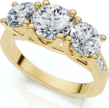 Celebrate your past, present, and future with this stunning 2 Carat Three Stone Diamond Ring. Designed for both engagements and anniversaries, this ring features three magnificent lab-grown diamonds, symbolizing your journey together. Each of the prominent round brilliant-cut diamonds is carefully selected for its exceptional quality, boasting an EF/VS grade. This ensures a near-colorless appearance and very slight inclusions, resulting in remarkable brilliance and fire from every angle. The central diamond is flanked by two slightly smaller, yet equally captivating, stones, creating a harmonious and balanced display of sparkle. The diamonds are securely set in a classic four-prong style, allowing maximum light to reach each stone and enhance its natural radiance. The band is subtly accented with smaller pave-set diamonds along the shoulders, adding an extra touch of glamour and continuous sparkle.