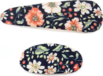 Add a touch of charm to any hairstyle with this beautifully coordinated 2-piece clip set. Each set includes one oval clip and one petal-shaped clip, both covered in unique floral prints—from playful pastels to vintage-inspired blooms. Whether you're dressing up for a special occasion or adding flair to everyday looks, these clips are as practical as they are pretty. Comes in a charming keepsake tin—perfect for gifting or storage. Includes 2 clips: 1 oval + 1 petal shape Available in 6 unique floral print combinations Lightweight, secure, and easy to style Made in Korea Size: 2.2" - 3.5" (5.6 - 9 cm)