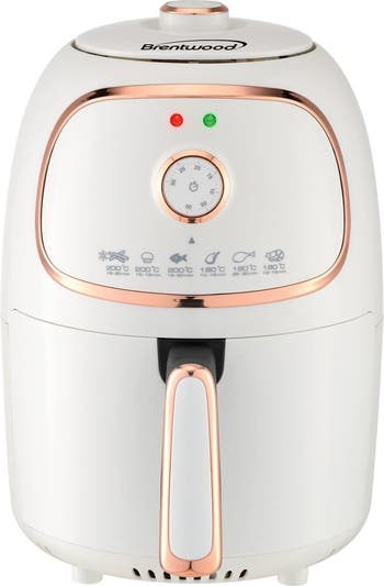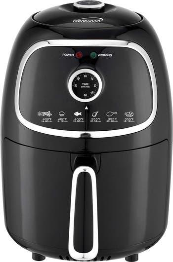 Fry food to perfection with the Brentwood 2 Qt. 1,200 Watt Electric Air Fryer with Timer and Temperature Control. This fryer cooks quickly and evenly without the guilt of extra fat and calories. It requires little-to-no oil to beautifully cook french fries, onion rings, chicken wings, steak, roasted veggies, and more. Use the quick-reference temperature guide and the 30-minute timer with auto-shutoff for fast, crispy results. The Blue fryer's cool-touch, removable fry basket makes serving easy. The frying pan and basket is made with a nonstick surface for effortless cleanup.