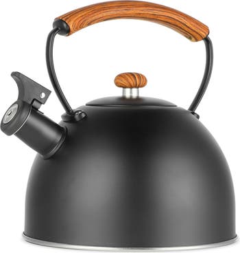 The MegaChef 3.2 Quart Whistling Tea Kettle is the perfect blend of style and functionality for your kitchen. Crafted from durable stainless steel, this kettle boasts a smooth matte black finish that blends well with any kitchen decor. With a generous 3.2-quart capacity, it's large enough to heat water for multiple cups of tea or coffee, making it ideal for families or entertaining guests. The kettle features a whistling spout, alerting you when your water is boiling, so you never have to guess when it's ready. Designed for both safety and ease of use, the MegaChef Tea Kettle comes with a cool-touch nylon handle that remains comfortable to hold, even when the kettle is hot. The handle is fixed securely for added stability while pouring, offering a firm grip for a spill-free experience. Plus, it is induction safe, making it compatible with a wide range of stovetops. Whether you're a tea enthusiast or simply need a reliable kettle for daily use, this kettle's combination of practicality and style makes it a must-have addition to your kitchen. Item Dimensions: 9.00" x 8.00" x 8.50" Item Weight: 1.10lbs