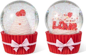 This set of two Valentine's Day resin cupcake waterglobes is thoughtfully designed decor pieces created to enhance the romantic atmosphere. Each globe features intricate Valentine’s Day-themed designs, capturing the essence of the holiday.