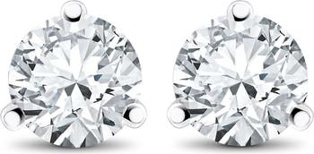Studs features two round brilliant cut genuine EX3 lab grown diamonds. The diamonds are 3 prong set in solid basket style high polished setting.