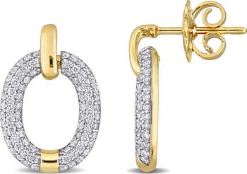 3/4 CTW Diamond Oval Circle Earrings 14k Gold