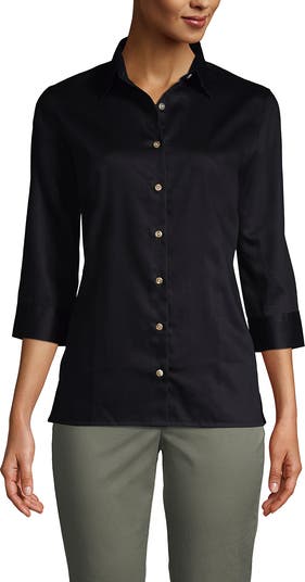 Look fantastic in this all-cotton sport shirt. Just wash, dry and wear. It's styled for her, with bust darts and shaped sides for a fit that follows her shape. We also gave her a trim straight collar, three-quarter length sleeves and a clean, no-pocket front. The straight hem falls to high hip, with side vents for tuck or "un" tuck options.