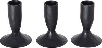 Elevate your interior design with the CG Hunter 3.5" Iron Candleholders in Black – a set of three. These artisan-crafted candleholders blend modern sophistication with enduring allure, making them an ideal enhancement to any decor style. With their sleek black finish, they seamlessly enhance mantelpieces, dining tables, or accent shelves, offering a fashionable base for your preferred taper candles.