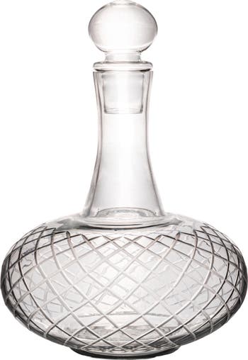3.5-Quart Etched Glass Decanter with Diamond Pattern and Glass Stopper, Clear