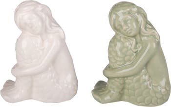 3.55" Ceramic Mermaid Salt/Pepper Set Of 2