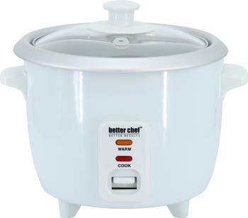 Making rice has never been this simple with the Better Chef 3 Cup Automatic Rice Cooker. This small but mighty rice cooker is a breeze to use, simply add your rice and water and press to cook button. No waiting around watching your rice because the rice cooker does all the work for you, and the convenient keep warm function means you can make rice ahead of time and have it still warm for your meal. The included measuring cup and rice paddle means this is ready to use straight out of the box. A removable inner bowl makes it easy to clean up. Item Dimensions: 9.50" x 8.00" x 8.50" Item Weight: 2.50lbs