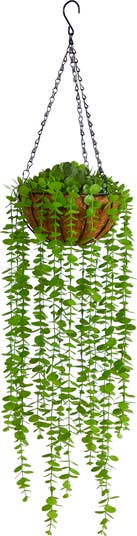 If you miss the greenery of the jungle, bring the tropical forest to your space with this Eucalyptus Artificial Hanging Plant. Vine-like leaves hang from a basket, resembling a bushy, full head of hair, literally. This faux plant the perfect alternative for when you lack space or want to add vertical focal points that transport you to your favorite sultry paradise. If you're craving the spa look, place a family of hanging trees above the tub and indulge in some self-care. This fake plant hangs 3ft. from top to bottom and can easily be hung! Artificial plants are manufactured using synthetic materials, such as polyester material or plastic, and are well designed and constructed to be life-like in appearance. This item will need to be re-shaped when removed from the secure box to allow it to reach its fullest size. Your artificial plant will look beautiful for years to come; simply wipe clean with a soft dry cloth when needed.