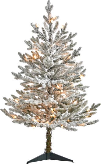 3-ft Flocked Fraser Fir Artificial Christmas Tree with 200 Warm White Lights and 481 Bendable Branches