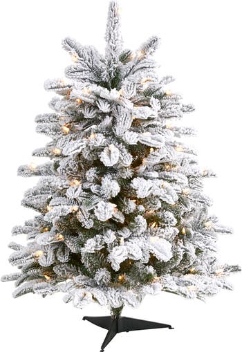 3-ft Flocked North Carolina Fir Artificial Christmas Tree with 150 Warm White Lights and 545 Bendable Branches