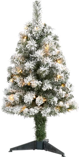 Evoke a winter wonderland this holiday with this Flocked West Virginia Fir Artificial Christmas Tree. Entirely maintenance-free, this winter-inspired Christmas tree boasts soft looking foliage with 90 easy-to-bend branches for showcasing decorative ornaments, all beautifully frosted with faux snow to help evoke the ultimate White Christmas setting. Arriving pre-strung with 50 clear LED lights to help eliminate tangles and carefully stabilized on an accompanying stand, this 3' tall frosted artificial Christmas tree will undoubtedly transform any home or office into a joyous holiday environment for years to come.