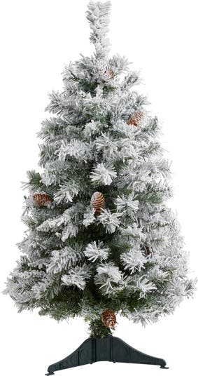 Complete a traditional Christmas setting this holiday with the help of this Flocked White River Mountain Pine Artificial Christmas Tree. Easy to set-up and entirely maintenance-free, this winter-inspired Christmas tree boasts a robust collection of realistic looking foliage consisting of 126 easy-to-bend branches for showcasing holiday accents and accented throughout with faux pinecones that look incredibly realistic. Finished with a light frosting of faux snow, it's guaranteed to create a picturesque Christmas wherever displayed. Carefully stabilized on an accompanying stand, this versatile 3' tall frosted artificial Christmas tree will undoubtedly transform any home or office into a joyous holiday setting for years to come.