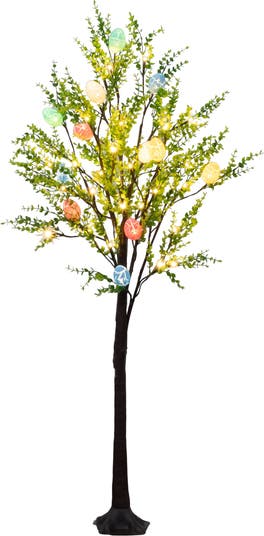 Bring the freshness of spring indoors with this 4-ft pre-lit artificial Easter twig tree, adorned with leafy green foliage throughout. Accented with colorful egg-shaped LED ornaments, it captures the playful charm of a blooming garden. Each pastel crackle-finish egg adds texture and whimsy, while the 6 warm white LED lights create a warm, inviting glow. Inspired by nature, the brown twig branches, trunk and vibrant greenery make it perfect for styling in entryways, kids’ rooms, or classrooms. Simply plug it in, let it sparkle, and enjoy a touch of spring magic that lasts well beyond Easter. Create special memories with the ones you love today.