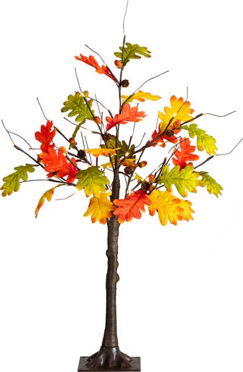 You know when the season is changing hues and the air is crisp, this autumn maple artificial fall tree brings that feeling. Inspired by a forgotten forest, the leaves are in different shades of green, red and yellow hues to showcase the maturing of the leaves. Crafted from high-quality materials, pinecones and acorns accent the branches for texture and an organic touch. Pre-lit with 36 warm white LED lights, set this piece anywhere for a cozy, moody glow. Standing 3-Ft from a sturdy base, display in a planter of your choice. Our designers love it for kids' room, offices or coffee tables.