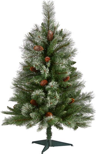 Evoke hints of a winter wonderland this holiday season with the help of this snowy artificial Christmas tree! Completely maintenance-free, this winter-inspired fake Christmas tree boasts a robust silhouette of snow-dusted foliage made up of easy-to-bend branch tips for decorating with your own holiday ornaments, accented throughout with faux pinecones that look incredibly lifelike. Carefully stabilized on a metal stand, this versatile 3' tall snowy artificial Christmas tree will not only make holiday decorating a breeze but ensure your home is always holiday-dressed for years to come.