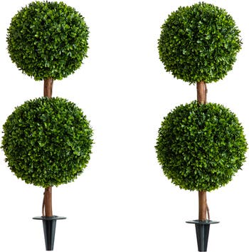 3-ft UV Resistant Artificial Double Ball Boxwood Topiary with Integrated Ground Stake (Indoor/Outdoor) - Set of 2
