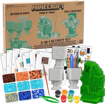 - 3 CRAFT ACTIVITIES IN ONE SET: Let your creativity side flow with this 3-In-1 set. This set includes a Pixel Art Set, a Pour 'N Paint Set, and a Design A Vinyl Set that allows kids to create a variety of Minecraft characters.