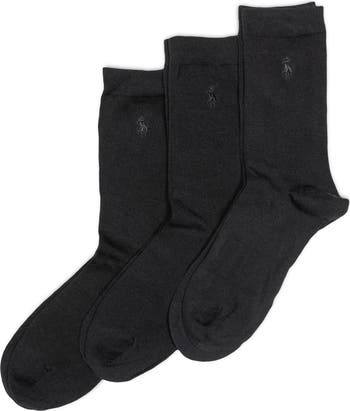 A tonal signature embroidered pony brands these versatile crew socks knit from a supersoft stretch-enhanced blend.