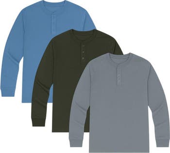 Stock your rotation with three ultra-soft, everyday Henleys built for comfort and clean style. Each tee features a classic 3-button placket, ribbed cuffs that keep their shape, and a smooth, breathable knit that layers effortlessly under flannels and jackets. Wear one, wash one, have one ready—your weekly uniform, solved.