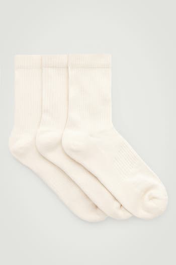 Replenish your basics drawer with this three-pack of ribbed socks. Each pair is crafted from an organic-cotton blend with a touch of stretch and has comfortable elasticated cuffs.