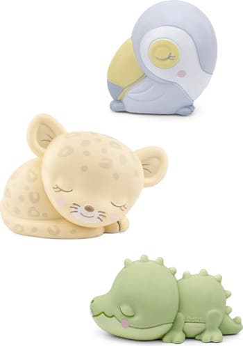 This bundle of three Sleepy Friends from the jungle will magnetically fit on your child's Toniebox (sold separately) to help calmly entertain kids as they rest. Each jungle character features calming jungle sounds, melodies or stories to help your little one drift happily off to dreamland.