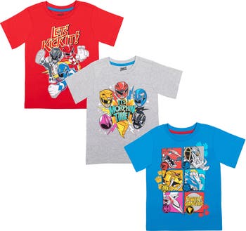 Power up their playtime with this action-ready 3-pack of Mighty Morphin Power Rangers tees! Featuring bold prints of fan-favorite heroes like Jason, Trini, Zack, Billy, and Kimberly, these officially licensed shirts bring classic Ranger energy to every outfit. Made from a soft cotton-blend with easy pull-on comfort, they're perfect for school, birthdays, or saving the day in style. Morphin fun starts with every wear!