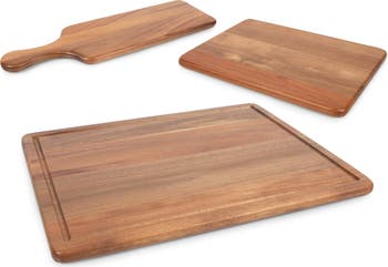 Multipurpose surfaces in three sizes, this acacia wood charcuterie board set is the perfect place for meal prep thanks to its sturdy design, But each piece is so stylish you won't mind leaving them out on the counter or using them for serving pieces.