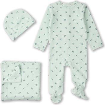 Seeking cute, cozy outfits for your pint-sized pilot? Check out this 3-piece set with its fun "Aviation" print. The cotton-rich fabric feels soothingly soft next to your tot's tender skin. And the knit-in shape-keeping stretch ensures comfy, flexible fit. Set includes snap-close footie, cuddly blanket, and head-warming cap.